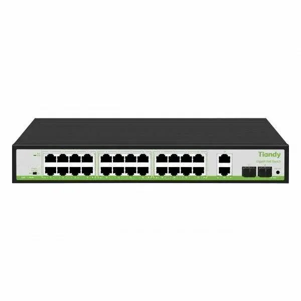 Неуправляемый РоЕ коммутатор, 28 портов (24 РоЕ RJ-45 х1Гбит/с + 2 Uplink RJ-45 х1Гбит/с + 2 Uplink SFP х1Гбит/с); РоЕ IEEE802.3af/at до 30Вт/порт; РоЕ бюджет 260Вт; Поддержка PoE Watchdog, PoE Priority (1-16 порты), Extend режим 250м (17-24 порты); Питание AC 100-240В; Температура эксплуатации -10~50℃; Габариты в упаковке: 370х290х85мм, вес: 2.28 кг.